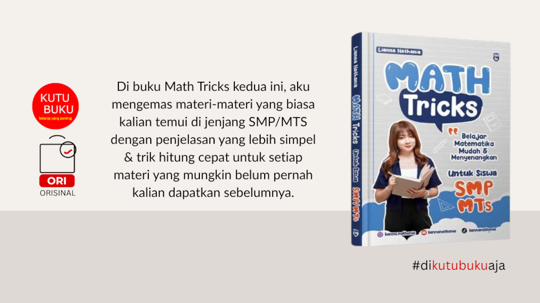 Matematika sering menjadi pelajaran yang dirasa paling sulit untuk dipelajari. Dulu, aku pun merasakan hal yang sama. Sampai akhirnya aku berhasil menemukan cara untuk belajar matematika yang lebih mudah & menyenangkan, aku mau membagikannya ke kalian melalui buku Math Tricks SMP/MTS!